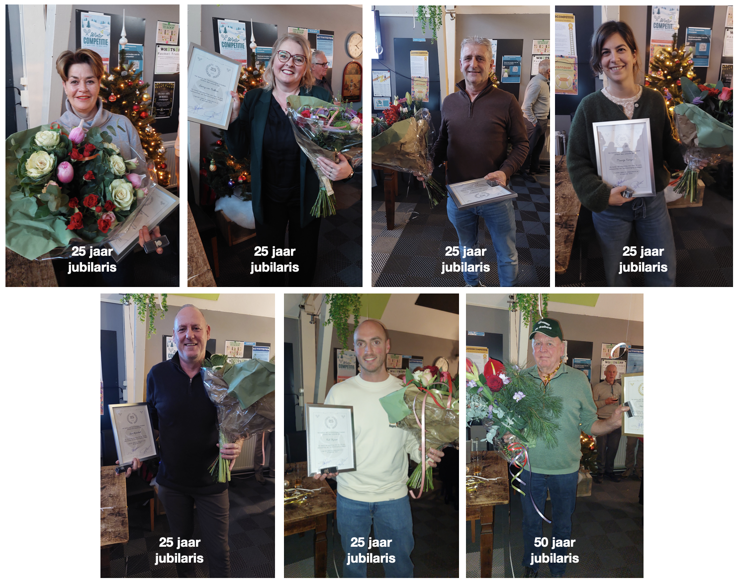 Voor de de jubilarissen was er een kleine quiz gemaakt. Er waren maar liefst 6 jubilarissen die al 25 jaar lid zijn en Theo is zelfs al 50 jaar lid. Omdat Theo ook al meer dan 15 jaar het onderhoud verzorgd, werd hij extra in het zonnetje gezet. Tussendoor kwamen er diverse schalen met hapjes voorbij en aan het eind van de middag was er voor iedereen nog een kopje soep.