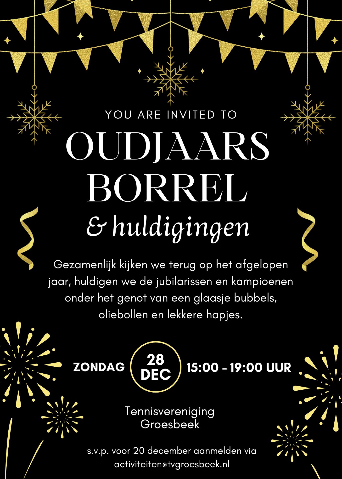 Op zondag 28 december is de oudjaarsborrel. Ruim 65 leden hebben zich al aangemeld om hierbij aanwezig te zijn. Wil jij ook komen? Stuur dan snel een mailtje naar [email protected]
