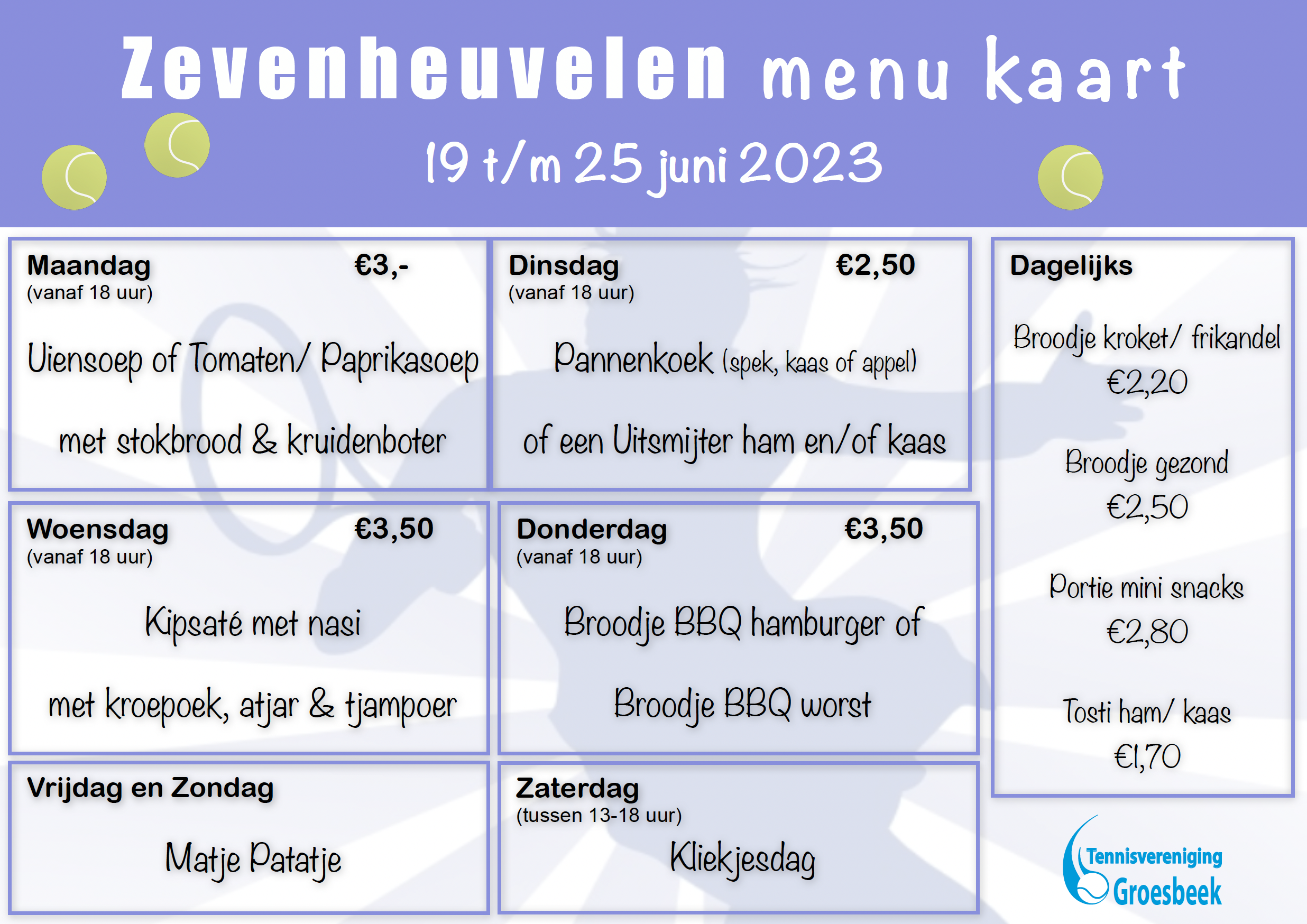 Speciale menukaart tijdens Zevenheuvelentoernooi