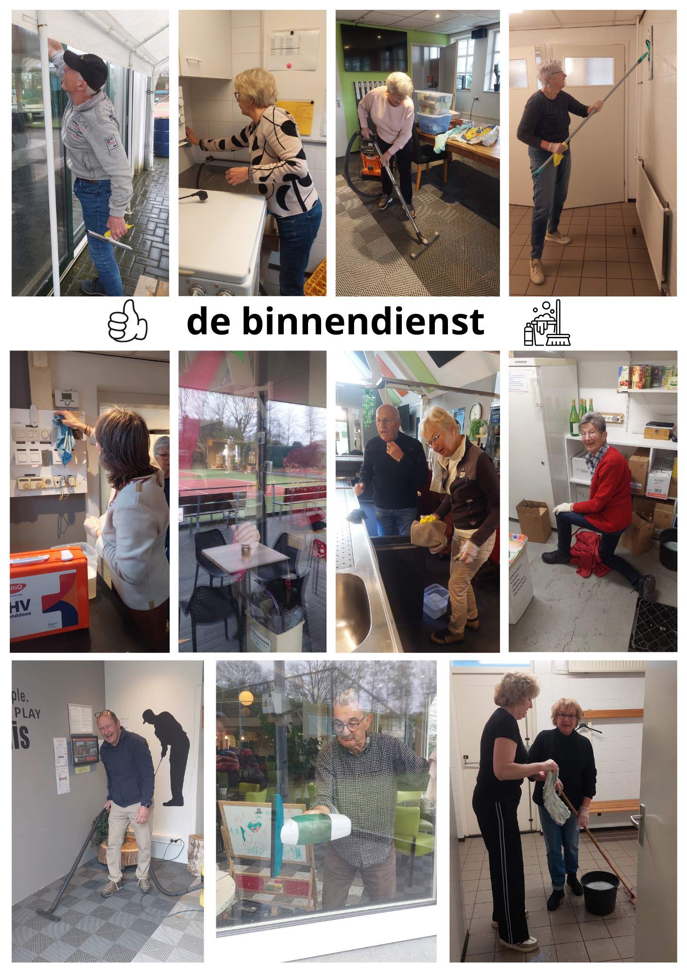 Binnen werd er ondertussen ook hard gewerkt door de binnendienst. Gewapend met stofzuigers en emmers sop werd het clubhuis grondig onder handen genomen. Geen hoekje werd overgeslagen – zelfs het stopcontact achter het gasfornuis is weer blinkend schoon!