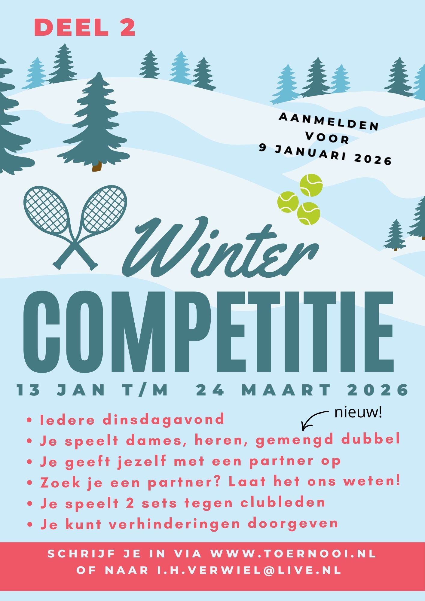 Alleen voor onze eigen tennisleden is er een interne wintercompetitie.
